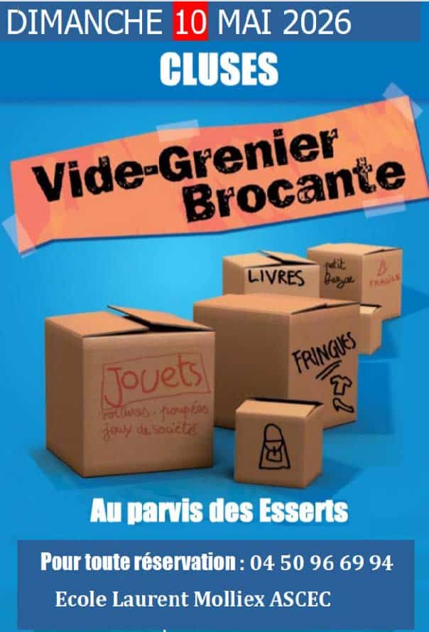 Le dimanche 10 mai 2026, l’école L. Molliex organise son vide-grenier au parvis des Esserts. Un rendez-vous convivial et ouvert à toutes et tous pour chiner, vendre et partager un moment agréable en famille ou entre amis.